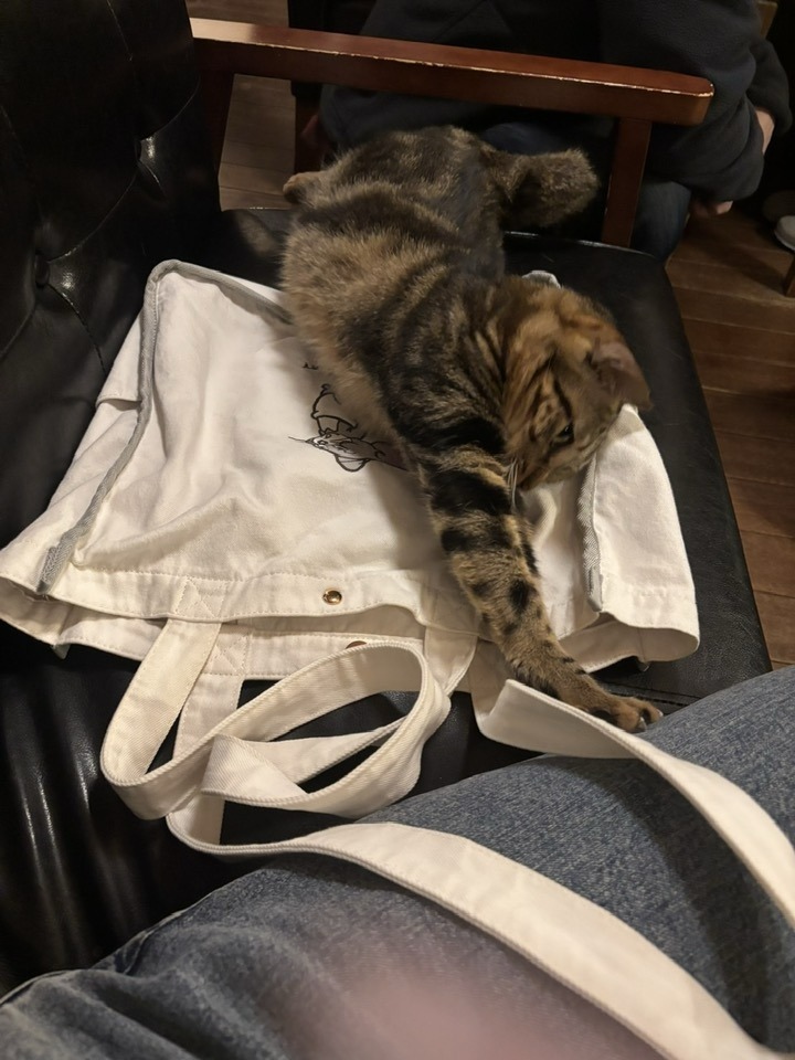 11月21日(金)は17時から営業 今日11月21日(金)は17時からの営業とさせていただきます。ご不便をおかけし申し訳ありませんが悪しからずご了解下さい。★最近木曜日に混むことが多く、昨日もたくさんありがとうございました。写真はお客様のご提供で、お気に入りのキャンバス地トートバッグに乗るソル。毎回このバッグに座って舐めています💦